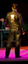 Orin Scrivello DDS is a sadist, a dentist, and a biker with a thing for handcuffs. Leather pants were a delightful option, and given that the actor was leading with his zipper in any case, an internal codpiece was incorporated. It was something I had considered from the beginning, but seeing the actor interpretation cinched it. The dentist smock was actually one of the first things in the show to be designed and nailed down; it was done in the first meeting with the director. It’s a little straight-jacket, a little bondage, but still reads as dentist on first glance. The stylized tooth logo on the back of his biker jacket was created in Photoshop, printed on iron on transfer paper, and fused to some white muslin; this was then cut out and tacked to the jacket.