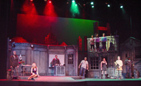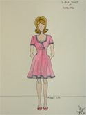 The urchins were meant to reflect the growing prosperity of the flower shop, and the surrounding neighborhood. Ultimately, the girls didn’t have as many changes in the first act as I had originally planned, because by the time all the blocking was done, they just didn’t leave the stage as often as the script said they did. As such, Crystal’s plaid skirt was the first thing to go primarily because the costume assistant who cut it out got the plaids all wonky, and I couldn’t look at it without twitching. After that aberation was out of the picture, I took the opportunity to make the girls look more unified, rather than use them as an indication of day to day, passage of time.