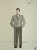Mushnik is basically a good man, if not misguided, and the cardigan in the opening scene gives him a defeated feeling, as well as a little hint of Mr. Rogers. Switching to the Suit jacket indicates some hope in the next scene. His third look is a new suit, with some color and a more expensive looking finish to the fabric.