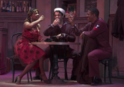 Sadly, what I most remember, about this project, was trying to repair the mess that was handed to me in the first place. The first cutting was done by another costume assistant, and then passed to me for stitching. This is where the problems started: The pattern had been lifted from the original uniform, and the other assistant graded it to the sizes of the actors... sort of. All of the shirt pieces even measured the correct width, if you weren't paying attention; upon further examination, however, I found that some pieces had been graded from the center, and some from the side; therefore none of the curves on the shaped yokes fit, WooHoo. I was never quite able to figure out what happened to the pants, other than bad arithmetic, they were just huge. We had to give the smaller pair to the bigger guy, then take them in about 8 or 10 inches, and cut another pair for the small guy. In total, I think that about 50% of the pattern pieces had to be re-cut. Salvaging these two costumes occupied 80-90% of my work hours on this build.